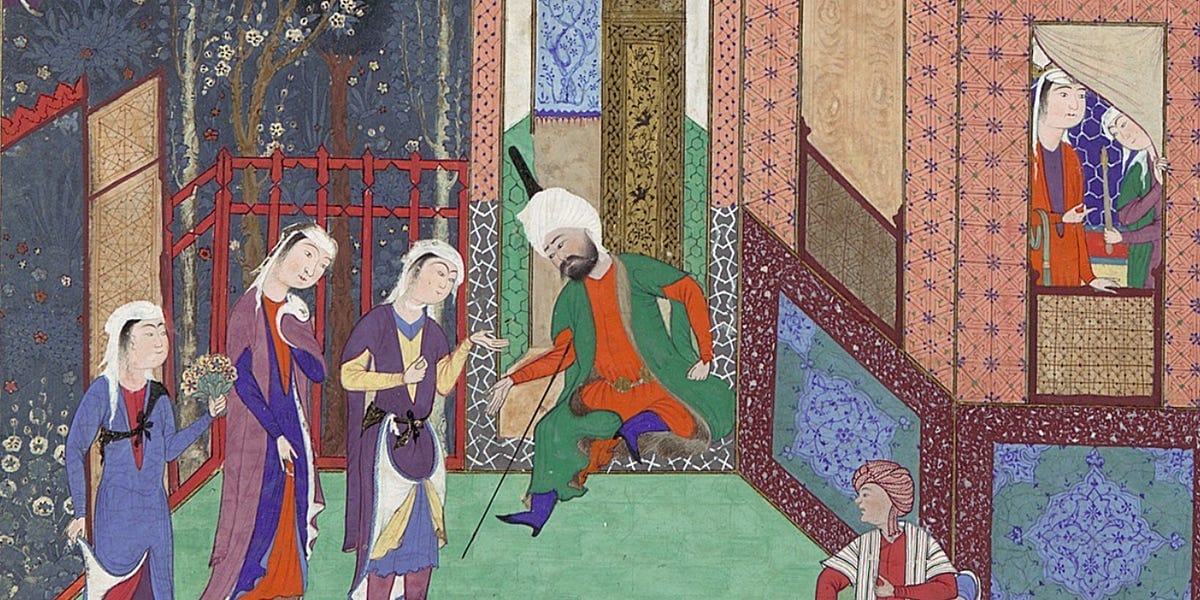 (Obviously white supremacy wasn't a thing then and their construction of race would be very different from ours, but when they say "all the beautiful young virgins" from every province? I want you to picture a lot of girls who are a lot of different shades of Black and Brown. Not, you know, this.) (Needless to say.)
