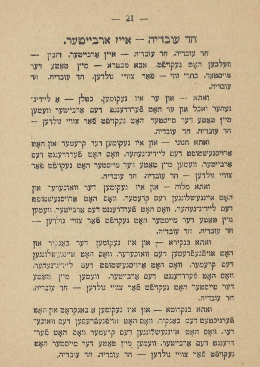 Chad Oyvedyo from the 1919 Socialist Nusach/Version Haggadah