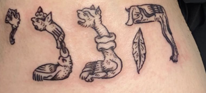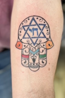 With regard to one who tattoos their skin, [if] he they a mark [an incision in their skin] but did not tattoo in it [that is, did not fill it in with ink, or] tattooed in it [that is, made ink marks on the surface of the skin] but did not make a mar [so that the process of tattooing was not completed] – they are not liable [aka they have not transgressed Jewish law]. One is liable [only] when they mark and tattoo with ink or eye paint or anything that leaves a [permanent] mark. Rabbi Simon ben Judah says in the name of Rabbi Simon, 'One is liable only when they write the name of God,' as it is written in the Torah, in Leviticus 19: Do not incise any marks on yourselves: I am God." (Mishnah Makkot 3:6)