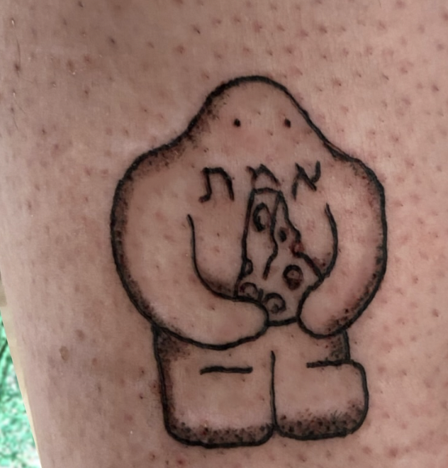 And one who does the tattooing thing has transgressed Jewish law! And one who shows up to their tattoo appointment, just lays there, says ow! a bunch and drinks water while someone else zaps a needle all over their skin (as you can see, I am very much an expert in this process from watching some tiktoks over the years) and pays is... uh... oh.