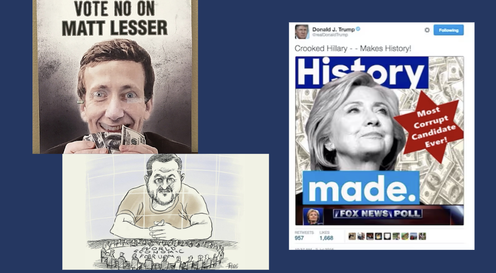 A campaign mailer sent by a GOP CT state senate candidate in 2018, depicting his Jewish opponent gleefully clutching fistfuls of $100 bills; a political cartoon of the Jewish president of Ukraine, Volodymyr Zelenskyy, zooming into the World Economic Forum with that "sinister global overlord" vibe, and of course the Trump tweet with Secretary Clinton and the money/corrupt/Star of David thing. The brilliant Eric Ward, an expert on authoritarian movements, wrote an iconic piece called "Skin in the Game: How Antisemitism Animates White Nationalism.â In it, he articulated a key issue: