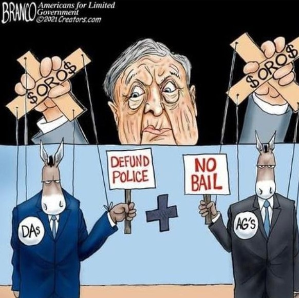 From top left: Poster with a caricature of Baron James de Rothschild with his face on the body of a crouching dog hoarding sacks of money, post-Dreyfus Affair, ca.1899-1900. Crouching Soros as Palpatine with his "Soros-funded DA's" helping explode Earth via crime, cool, cool, not racist at alllllll. Bottom left: Anti-Jewish poster from German occupied Serbia in 1941 with smirking Jewish puppeteer operating marionettes resembling Stalin and Churchill. Soros as puppeteer manipulating DAs and AGs with a "defund police" and "no cash bail" agenda. which of course đ they never would have gotten to on their own.